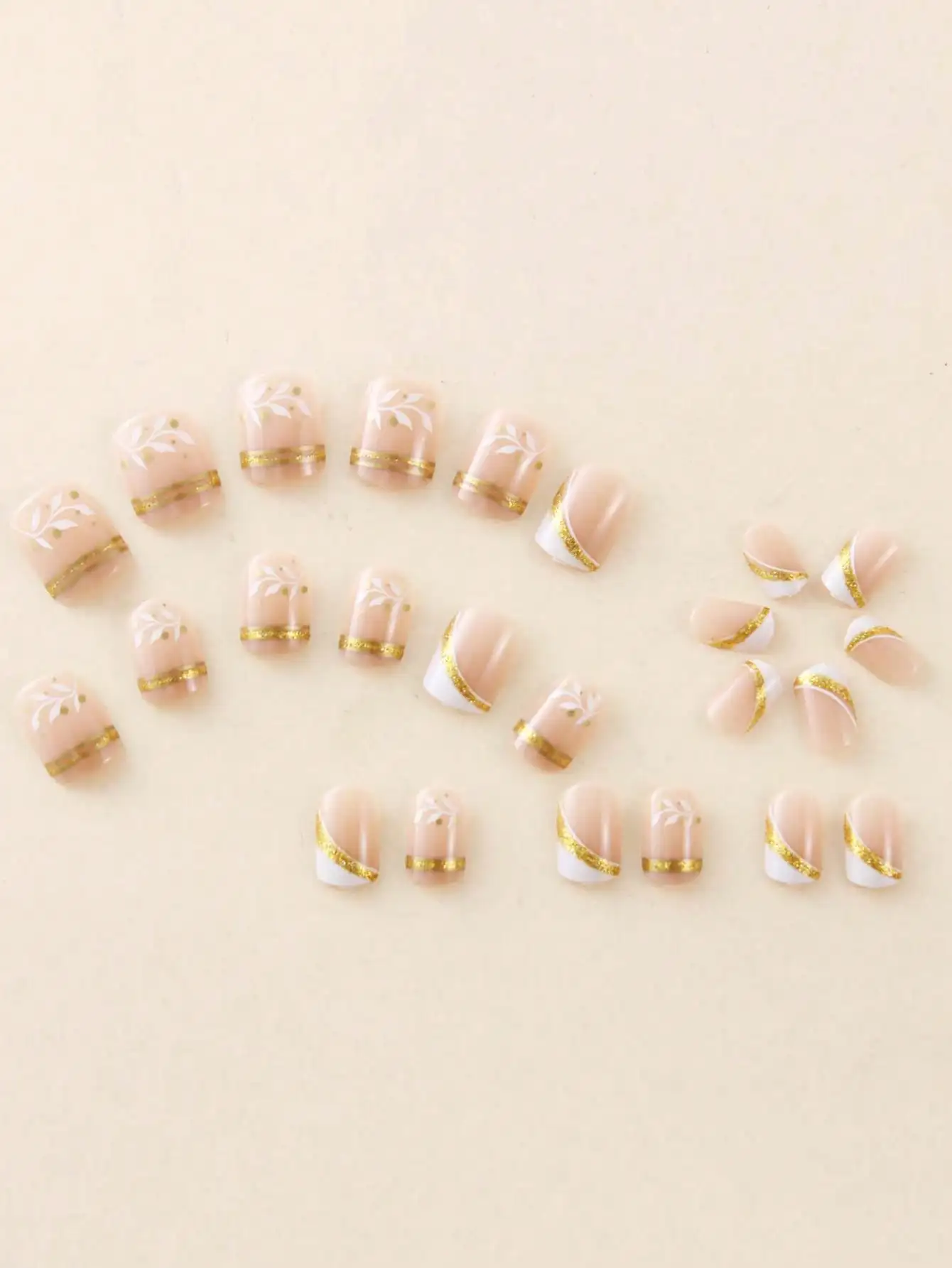Elevate your nail look with these 24pcs Short Square Nude French Manicure Nail Stickers! Featuring a classic nude base, crisp white French tip, and delicate minimalist gold line & leaf design, they blend timeless elegance with modern chic. The glossy gel polish finish mimics a salon manicure, while the reusable acrylic material lets you enjoy this sophisticated style again and again. Complete with a nail glue set, they’re perfect for quick, beautiful nail art at home—ideal for daily life, parties, weddings, and special occasions.