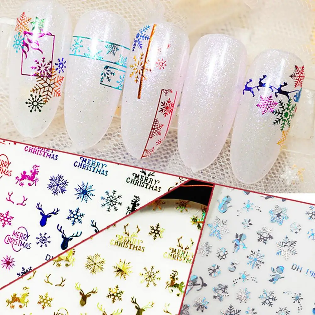 Nail Sticker Christmas Patterns 3D Effects DIY Snowflakes Christmas Nail Art Foils Winter Decor for Winter